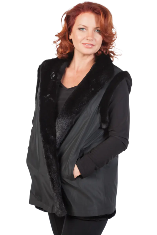 Sheared Vest Reversible to Taffeta